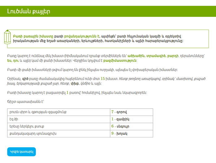 Ձեռք բերեք Իմ+ բաժանորդագրություն և այս առարկան Ձեզ համար հասանելի կդառնա: Իմ+ բաժանորդագրությունն ակտիվացնելու դեպքում Դուք հնարավորություն կունենաք օգտվել ոչ միայն «Խորացված հայոց լեզու» առարկայից, այլ նաև կայքում առկա բոլոր առարկաներից՝ իրենց մանրամասն բացատրություններով ու լուծման քայլերով: