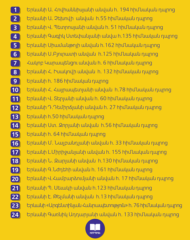 Ինչպես արդեն գիտենք, ԻմԴպրոց կայքը Երևանի քաղաքապետարանի աշխատակազմի հանրակրթության վարչության հետ կազմակերպել է մրցույթ Երևանի 12 վարչական շրջանների դպրոցների միջև, որի մեկնարկը տրվել է 10.11.2016թ: