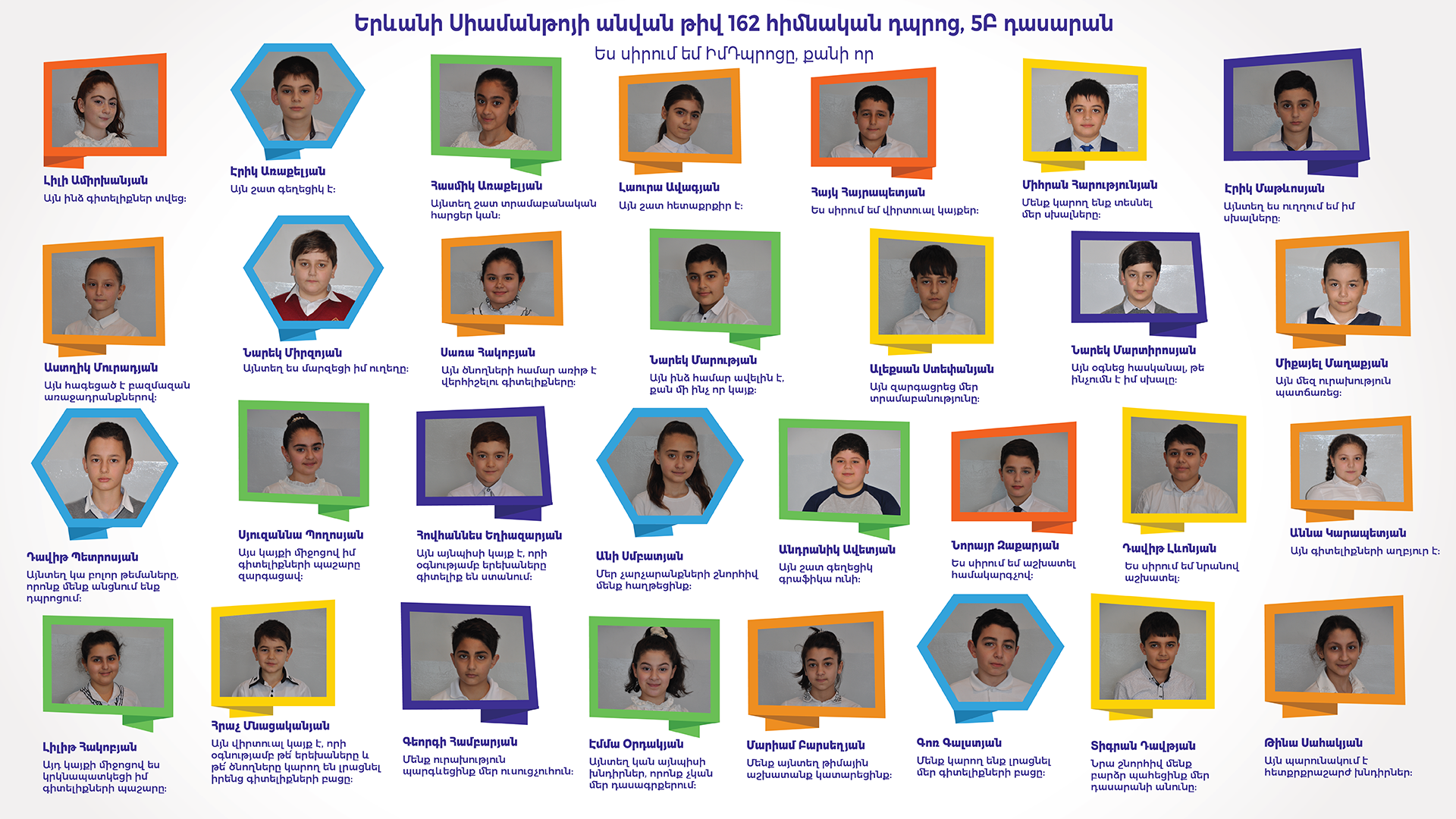 Մենք փորձեցինք կրթությունը դարձնել հասանելի, իսկ գիտելիքը՝ դյուրին յուրաքանչյուր մասնակից աշակերտի համար՝ տալով Ձեզ՝ մեր սիրելի երեխաներ, հնարավորություն զգալու գիտելիքի ուժը և նրա շնորհիվ նորանոր բարձրունքներ գրավելու բերկրանքը: Հպարտությամբ կարող ենք ասել, որ ընկերական և թիմային միջավայր ստեղծվեց ոչ միայն անհատապես յուրաքանչյուր դպրոցում, այլև ստեղծվեց մի ամբողջական մեծ ընտանիք բոլոր մասնակից դպրոցներից: